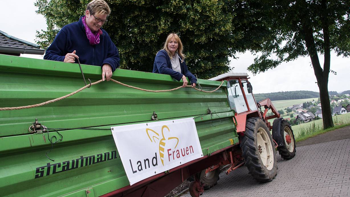 Naturgemäß kein großes Problem für die Landfrauen war die nächste Aufgabe: einen Wagen für den Umzug zu finden – inklusive Traktor und Fahrer. Die ehemalige Vorsitzende Irmgard Schütte wurde ihrem Ruf als „Unentbehrliche" gerecht, stellte das benötigte Gespann und verpflichtete kurzerhand ihren Ehemann als Chauffeur.