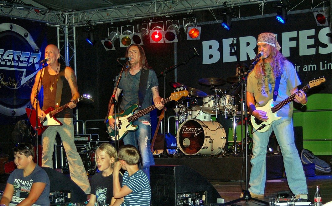 Noch eine Schippe drauf legten die Jungs von „Teaser", die ein bisschen an „Mötley Crue" erinnern. Richtig harter Hardrock, der einem die Faust in den Bauch schlägt. Dabei aber durchaus auch melodisch, mit mehrstimmigen Gesang und tollen Arrangements. Den Fans gefiels – und allen anderen auch. „Teaser" heizte seinem Publikum richtig gut ein.
