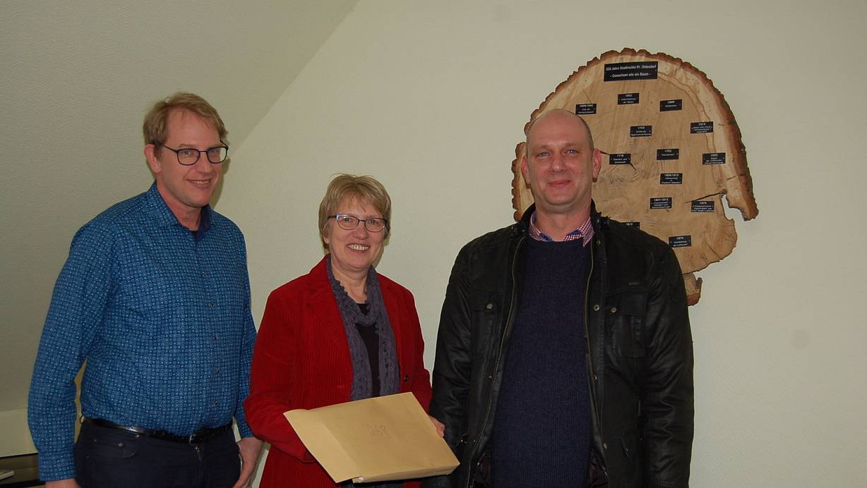 Das Paket mit den ausgefüllten und unterschriebenen Vordrucken übergab Mike Schwarz (r.) jetzt Marlies Bormann und Erik Pollert von der Stadt Pr. Oldendorf. | © Sandra Spieker