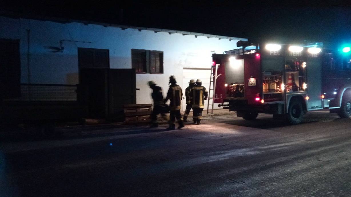 Während des Einsatzes bittet der Mieter der benachbarten Halle die Feuerwehrkameraden um Hilfe. Er meldet einen bedrohlichen Hitzestau im Holzofen.