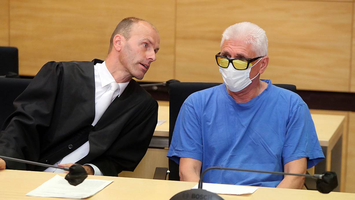 Vor dem Landgericht in Bielefeld unter Mordverdacht: Albert S. aus Pr. Oldendorf mit Anwalt Peter Rostek. | © Wolfgang Rudolf