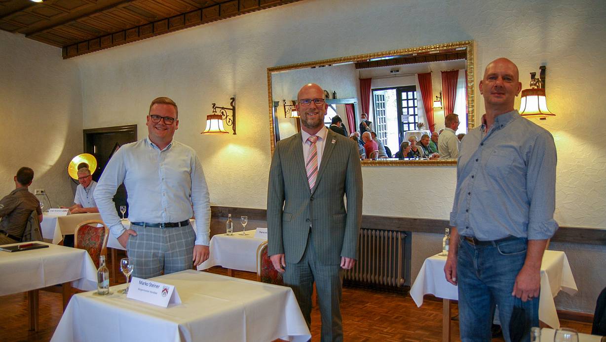 Die Bürgermeisterkandidaten: Marko Steiner (v.l.), Marvin Schrodke und Mike Schwarz haben mit Bürgern über ihre politischen Vorhaben diskutiert. | © Noah Brümmelhorst