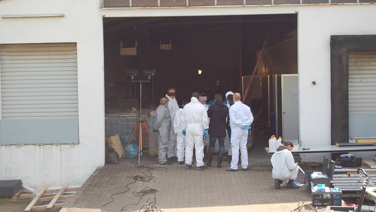 Eine Lagerhalle in Pr. Oldendorf-Börninghausen entpuppte sich 2019 als eines der größten je entdeckten Drogenlabore Deutschlands. Ein Pr. Oldendorfer und ein Rödinghauser müssen sich jetzt vor dem Landgericht Bielefeld verantworten.