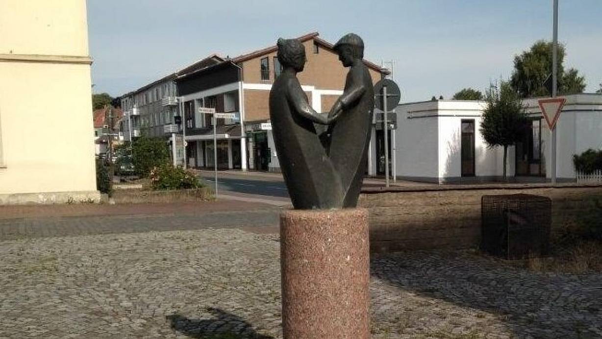 Die ehemals auf dem Kirchvorplatz stehende Bronzestatue ist gestohlen worden. | © Polizei Minden-Lübbecke