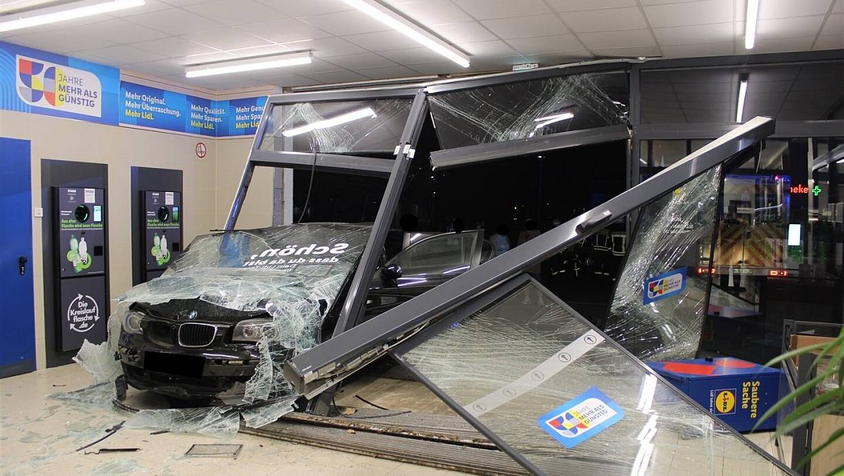 Herforder BMW kracht in Glasfassade von Lidl-Supermarkt in Preußisch Oldendorf
