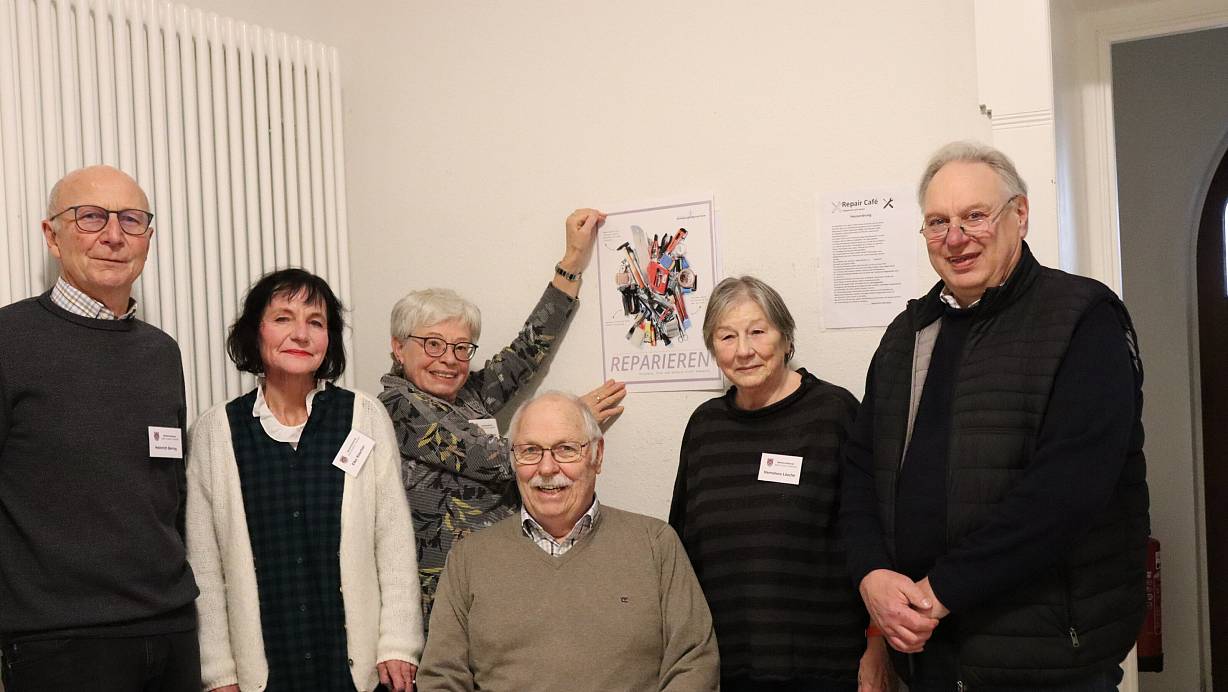 Die Gründer des Repair-Cafés freuen sich über die gelungene Eröffnung. (v. l. n. r.) Heiner Bering, Elke Röscher, Doris Rosenbaum, Wolfgang Schrodke, Hannelore Lösche und Günter Siegl vom Seniorenbeirat Pr. Oldendorf. | © Sigrid Dittmann