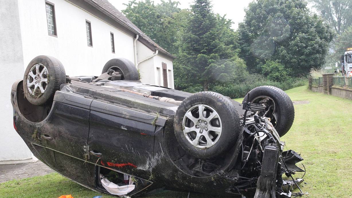 Der Audi überschlug sich aufgrund des Aufpralls gegen die Steinmauer. | © Klaus Frensing