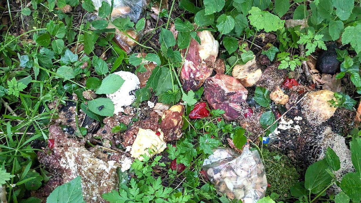 Starker Verwesungsgeruch verrät die Entsorgung einer großen Menge Fleisch abseits des Waldweges. | © Ilka Gülker