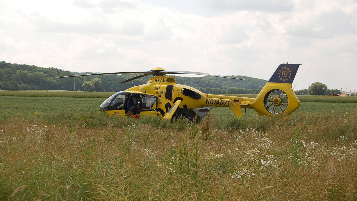 Zwei Rettungshubschrauber wurden zur Unfallstelle an der B65 gerufen. Einer davon landete auf einem Feld direkt neben der Straße. | © Sandra Spieker