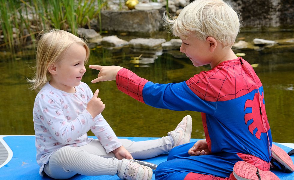 „Wir möchten das kleine Paradies nicht exklusiv für uns haben, sondern mit anderen teilen“, betont sie und freut sich, wenn Thore (5), Malea (3) und Caja (1) zum Spielen kommen. Thore hat sie sogar das Stand-up-Paddle-Fahren auf dem Teich gezeigt. „Menschen, die uns hier besuchen kommen, erleben ihren Aufenthalt als Urlaub. So haben doch insbesondere die Größe des Teichs und die vielen Rasenflächen eine beruhigende Wirkung auf gestresste Geister“, sagt die Hausherrin.