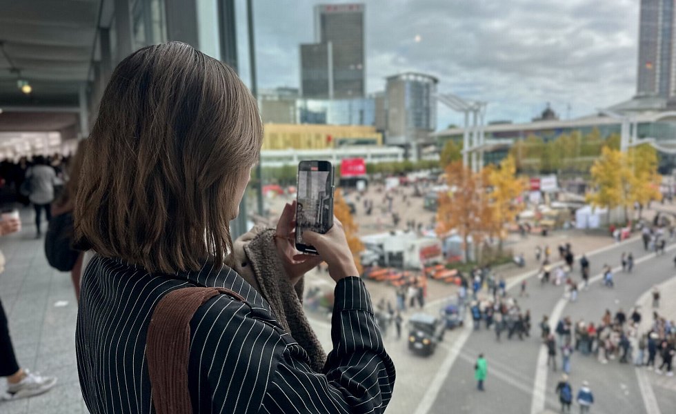 Doch hier, zwischen Rollkoffern und Reclam-Gelb beginnt für Merle Stork etwas Neues. Sie bleibt kurz stehen, dort, an der Bank, den Blick auf die Hallen gerichtet, als wolle sie sich vergewissern, dass all das wirklich passiert – nicht im Netz, sondern im echten Leben.
