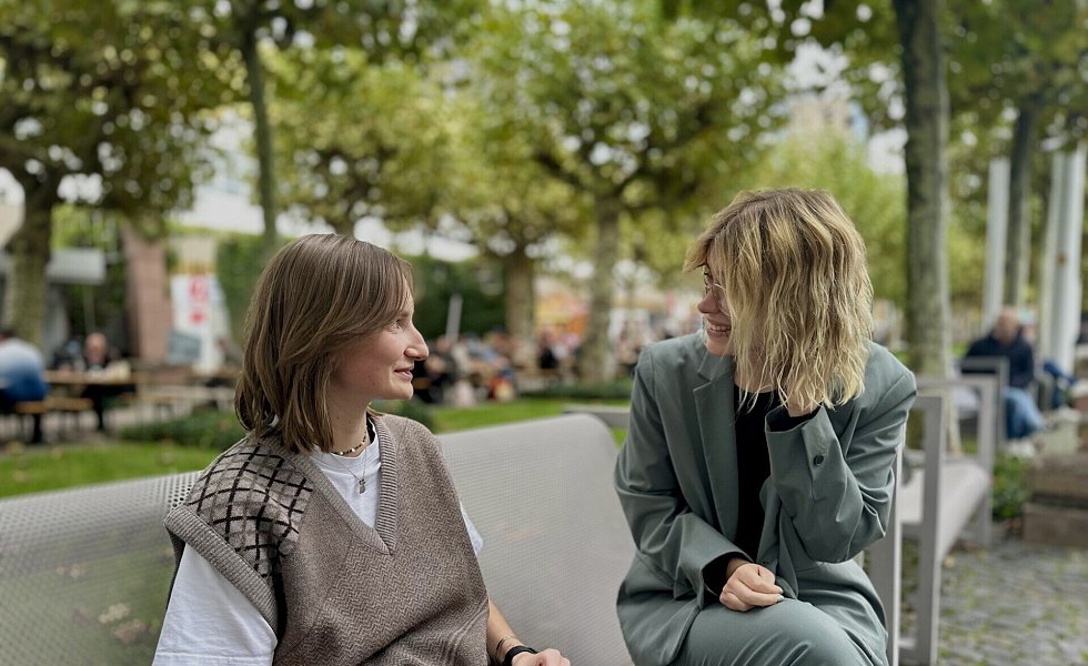 Frankfurt/Kreis Herford. Im Innenhof des weitläufigen Messegeländes sitzen zwei junge Frauen auf einer Bank. Zwischen gläsernen Hallen, Stimmengewirr und dem niemals endenden Geräusch rollender Koffer treffen sie sich heute zum ersten Mal.