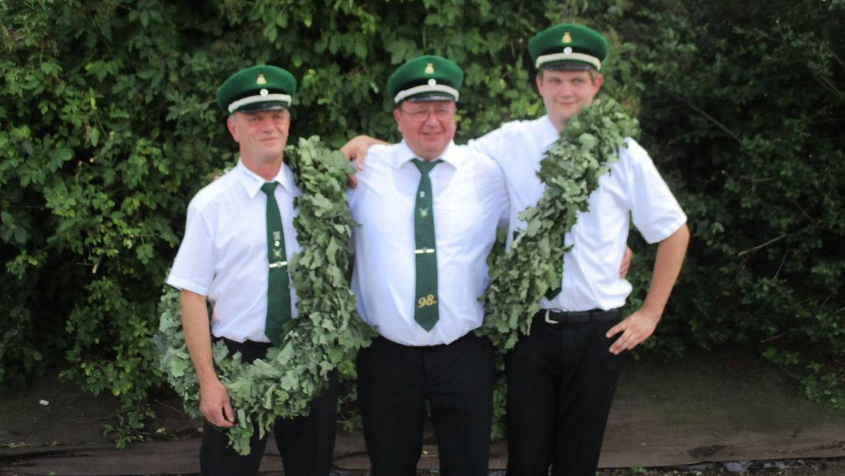 Major Jörg Peper freut sich, dass Schützenkönig Klaus Möller und Kronprinz Alexander Krüger ihre Amtszeit verlängern. | © Schützenverein Tonnenheide/Axel Kröger