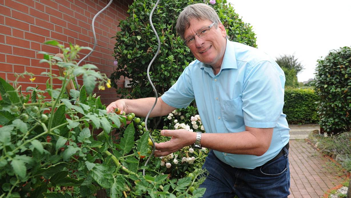 Udo Högemeier, Kandidat der SPD Rahden für das Bürgermeisteramt, baut seit knapp zwei Jahren auf seinem Grundstück auch Tomaten an. | © Joern Spreen-Ledebur