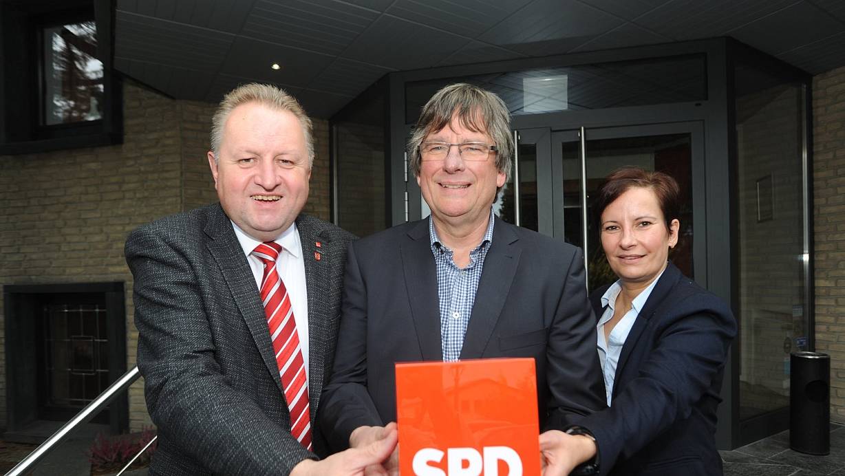 Der SPD-Stadtverbandsvorsitzende Torsten Kuhlmann (l.) und die Fraktionsvorsitzende Dorothee Brandt hatten im Oktober 2019 Udo Högemeier als Bürgermeister-Kandidat der SPD Rahden vorgestellt. Nun stehen alle drei vor neuen Funktionen. | © Joern Spreen-Ledebur