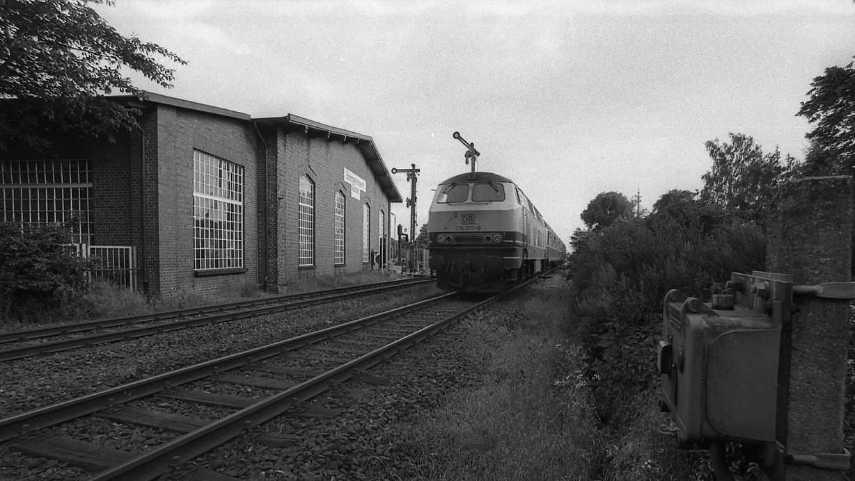 Ende Mai 1994 fuhr der vorerst letzte Eilzug von Bielefeld über Rahden nach Bremen. Geführt wurde der Zug von einer Diesellok der Baureihe 216. | © Joern Spreen-Ledebur