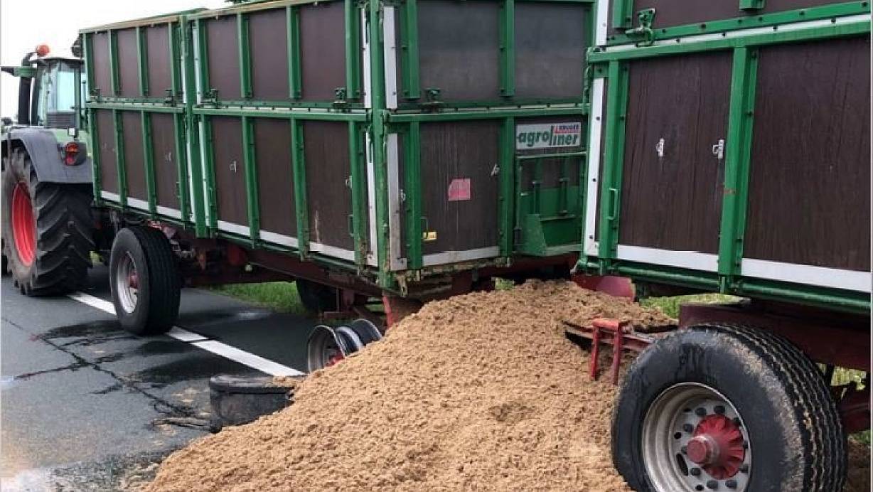 Dabei gerieten den Erkenntnissen der Polizei zufolge umherfliegende Gummiteile des betroffenen Reifens gegen einen Sicherungshebel der Ladeklappe des Anhängers, sodass sich diese öffnete und der Sand über einer Länge von knapp 50 Metern auf die Straße rieselte.