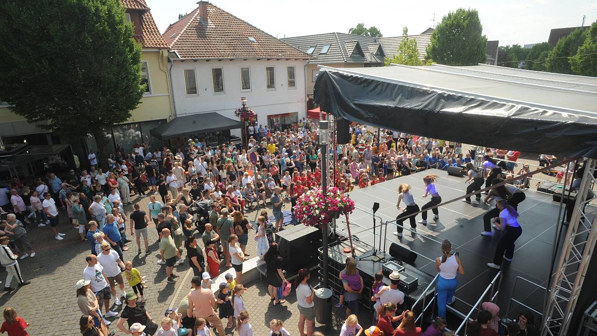 Vor allem während der Tanzvorführungen war die Bühne auf dem Rahdener Kirchplatz am Sonntagnachmittag umlagert. | © Joern Spreen-Ledebur