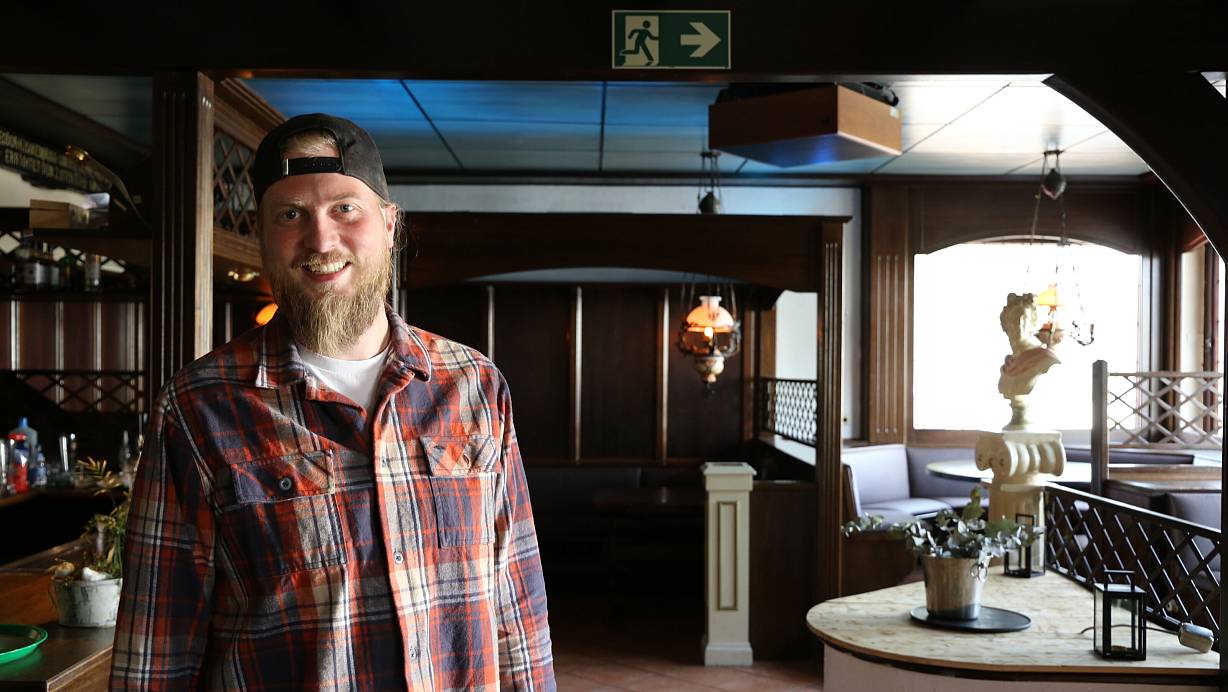 Lasse Jainski in seinem neusten Lokal, dem "Wirtshaus Rusticarlo". Noch sind die Überreste der Taverna Dionysos zu sehen, aber das soll sich noch ändern. | © Lena Kley