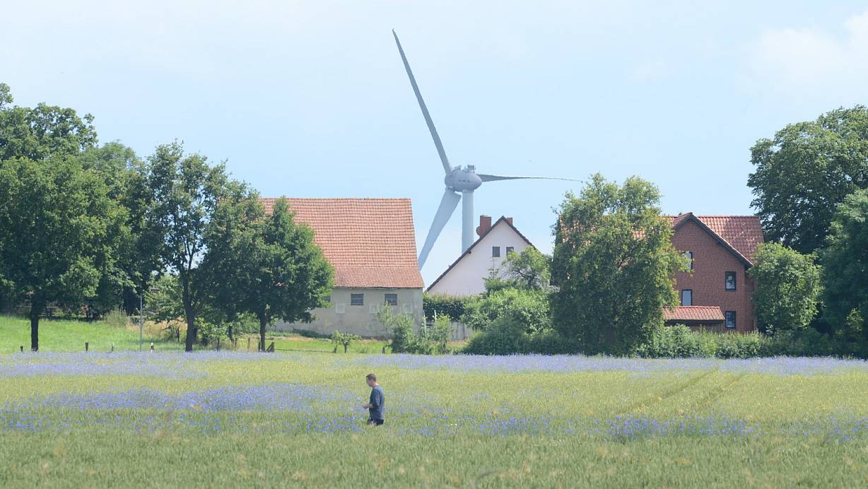 Umstritten: Bürger auch im Lübbecker Land kritisieren die aus ihrer Sicht zu geringen Abstandsflächen zwischen Windrädern und Wohnhäusern. Anlagen des Pr. Oldendorfer Windparks Niederheide wirken optisch mitunter so, als ob sie direkt zwischen den Häusern des Leverner Buchhofes stehen. | © Joern Spreen-Ledebur