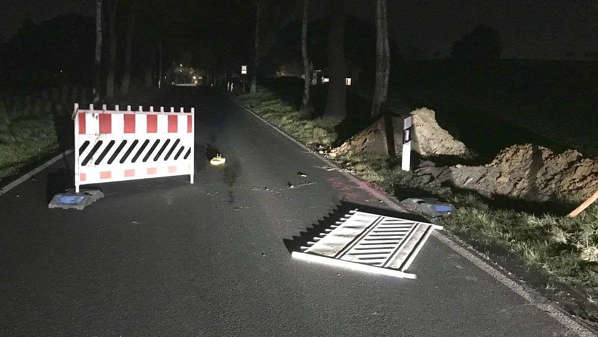 Am Abend gegen 20.15 Uhr fährt ein Stemweder mit seinem Auto auf der Drohner Straße. Als der 58-Jährige in Richtung Bohmte weiterfährt, bemerkt er plötzlich in der Dunkelheit in Nähe des Schlohwegs zwei quer auf der Fahrbahn stehende Warnbaken. Obwohl der Stemweder noch versucht mit dem Auto über den Grünstreifen auszuweichen, kommt es zum Zusammenstoß mit einer der Absperrungen. Der Mann bleibt unverletzt, allerdings entsteht erheblicher Schaden am Auto. Beide Warnbaken hätten zuvor zur Absicherung eines Bauloches auf dem Grünstreifen gestanden.