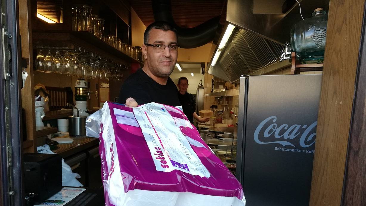 Ab einem bestimmten Mindestbestellwert schenkt der Leverner Gastronom Sami Mabrouk seinen Kunden eine Packung Toilettenpapier. | © Joern Spreen-Ledebur