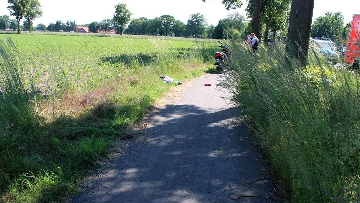 Zu der Kollision kam es gegen 15.30 Uhr, als der Bad Essener außerhalb der Ortschaft zwischen den Einmündungen Reininger Straße und Köperweg in nördliche Richtung fuhr. In einem Kurvenbereich stieß er mit der ihm entgegenkommenden 24-Jährigen frontal zusammen. Offenbar hatten sich die beiden Zweiradfahrer nicht rechtzeitig wahrnehmen können, da neben dem Kurvenverlauf vor allem das hohe Gras die Sicht erheblich einschränkte.