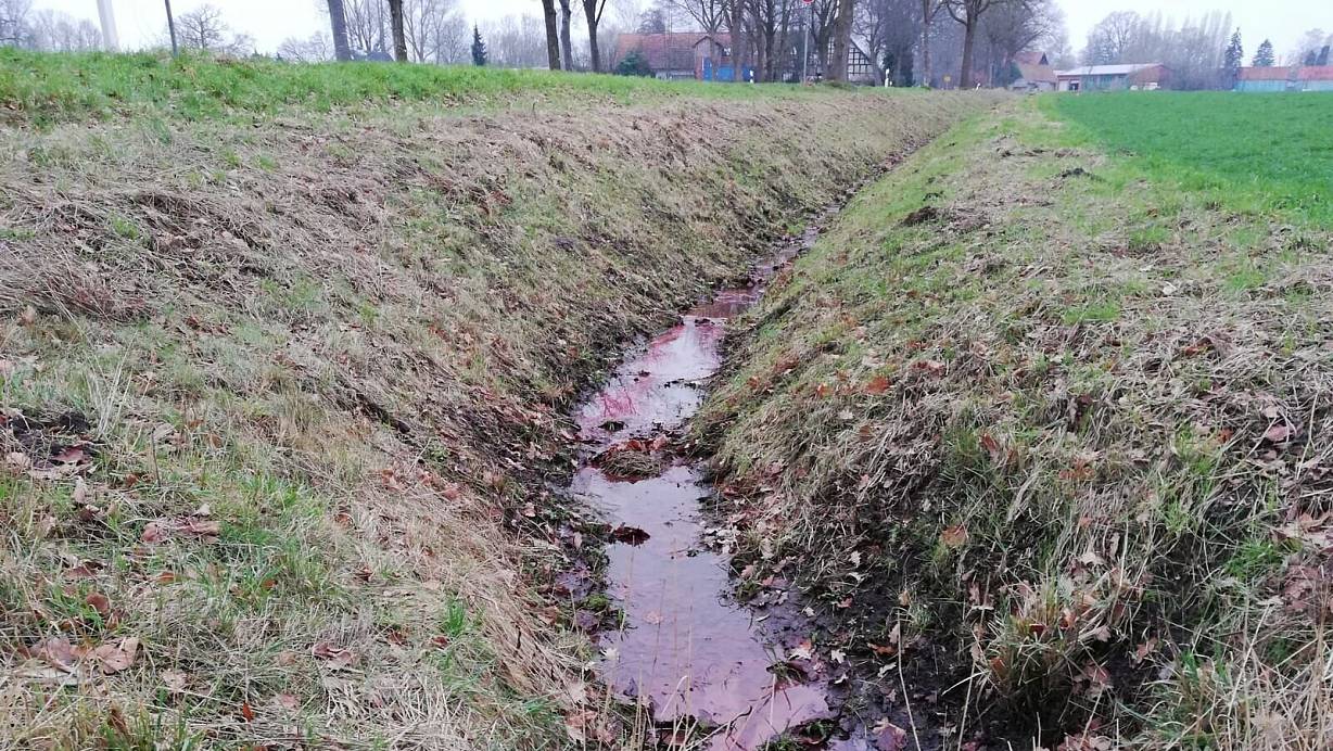 Das Landesumweltamt nennt die Ursache, warum sich das Wasser in einem Stemweder Straßengraben rot färbte. Die Staatsanwaltschaft ermittelt wegen eines anderen Vorfalls.