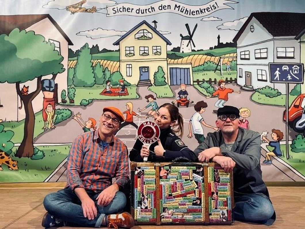 Das Bühnenprogramm wird durch hiesige Polizeibeamte und den beliebten Kinderliedersänger Rainer Niersmann gestaltet, der seit über 25 Jahren als Kinderliedersänger tätig ist. Gemeinsam bringen sie den Kindern die Themen der Verkehrserziehung mit viel Spaß und Bewegung näher. Polizeihauptkommissarin Kim Schmidt wird als Hauptdarstellerin auf der Bühne stehen, während ihr Kollege, Polizeihauptkommissar Michael Harting, als Hausmeister Klawuttke bunte Postpakete mitbringen wird, die an die teilnehmenden Kindergärten adressiert sind.