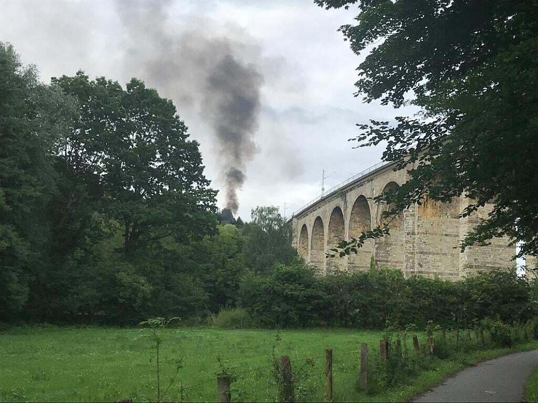 Gegen 18.20 Uhr hatten mehrere Anrufer eine Rauchentwicklung im Bereich des großen Viadukts gemeldet und die Feuerwehr alarmiert. Bereits auf der Anfahrt wurden aufgrund der weit sichtbaren Rauchsäule weitere Kräfte nachalarmiert, heißt es in einer Mitteilung der Feuerwehr Altenbeken.