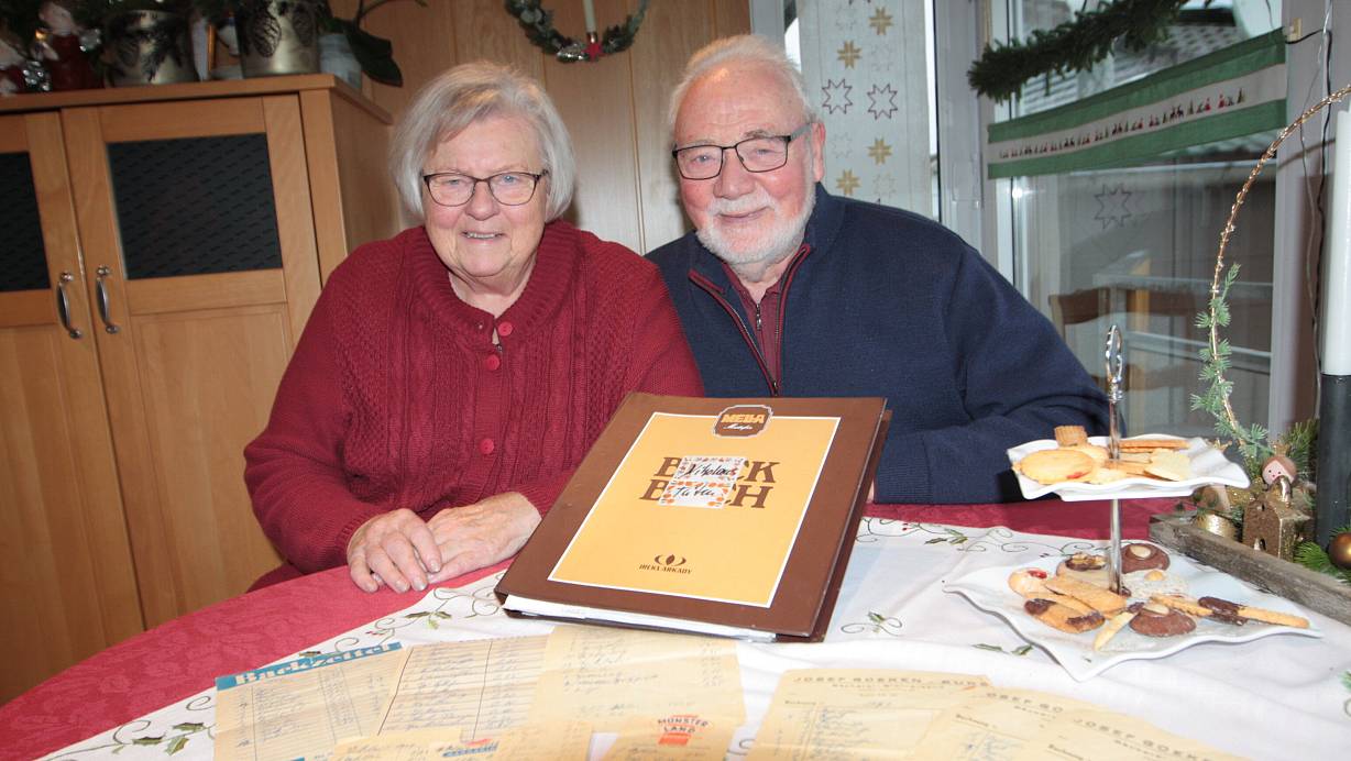 Christa und Georg Goeken haben sich 55 Jahre um die immer heiß begehrten Nikolaustüten für die Kinder in Buke gekümmert. In einem Ordner sind noch alle Bestellzettel aus den letzten Jahrzehnten. | © Uwe Müller