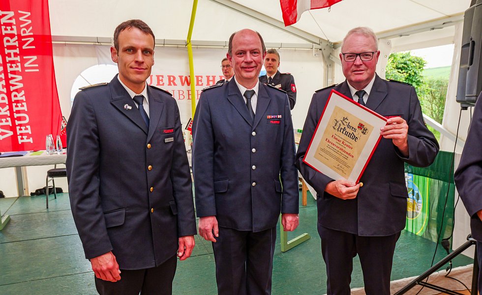 Die Deutsche Feuerwehr-Ehrenmedaille, die höchste Auszeichnung für Nicht-Feuerwehrangehörige, erhielt Gerd Sailer, Zugführer beim THW-Ortsverband Paderborn. Ehren-Kreisbrandmeister Elmar Keuter wurde einstimmig zum Ehrenvorsitzenden des Verbandes der Feuerwehr im Kreis Paderborn gewählt.
