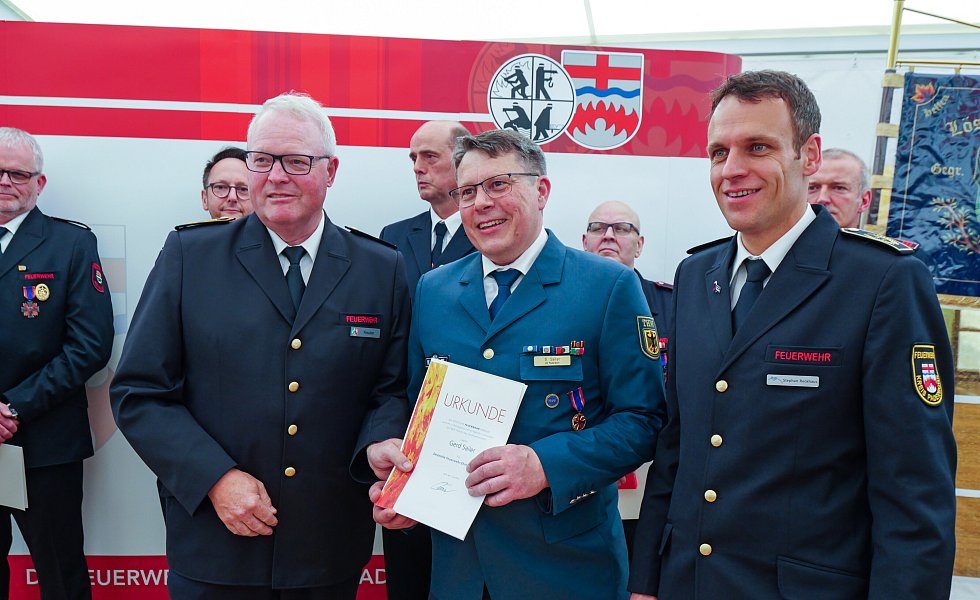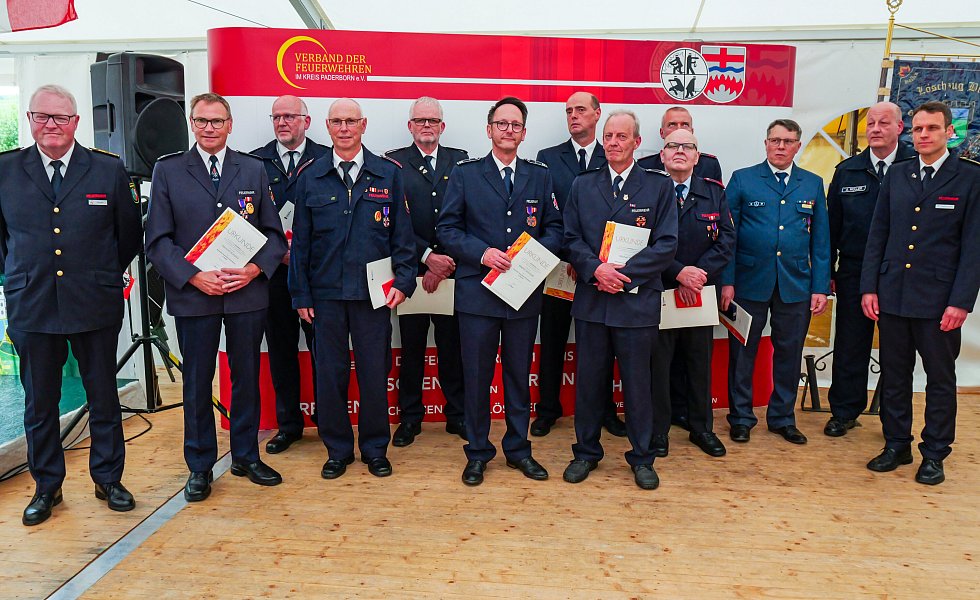Bei den Ehrungen wurden Johannes Rustemeier, Franz Ewers, Andreas Vogt, Martin Schmidt und Peter Hils mit dem Deutschen Feuerwehr-Ehrenkreuz in Bronze ausgezeichnet. Das Ehrenkreuz in Silber ging an Johannes Ewers, Heinrich Kürpick, Martin Meilwes und Andreas Müller. Mit dem Deutschen Feuerwehr-Ehrenkreuz in Gold wurde Michael Heck, langjähriger Leiter der Feuerwehr Bad Lippspringe, ausgezeichnet.