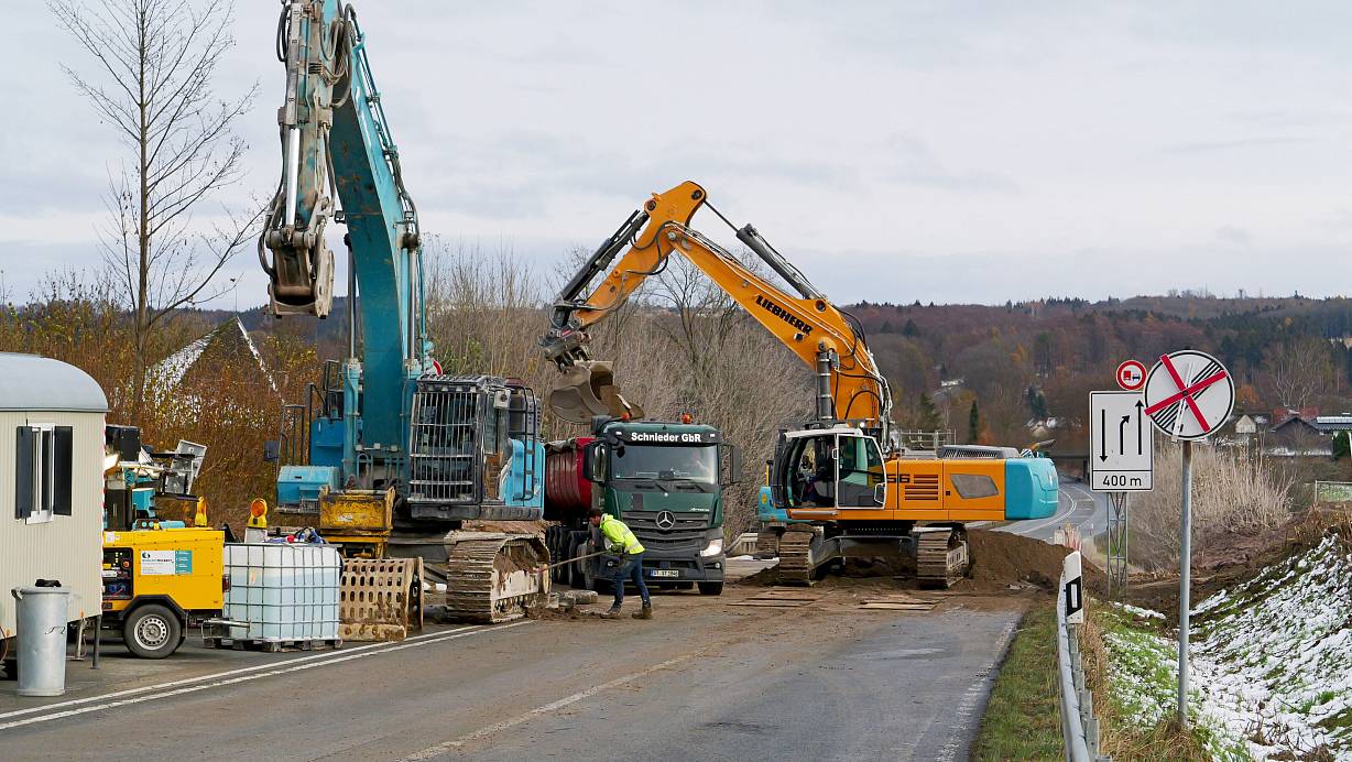 Für Januar/Februar 2026 ist das Auflegen der Betonfertigteile des Brückenüberbaus geplant, wie der Landesbetrieb mitteilt. Dazu muss an einem Wochenende die B64 im Brückenbereich wieder voll gesperrt werden. Voraussichtlich im Sommer 2026 sollen die Arbeiten am neuen Bauwerk abgeschlossen sein.