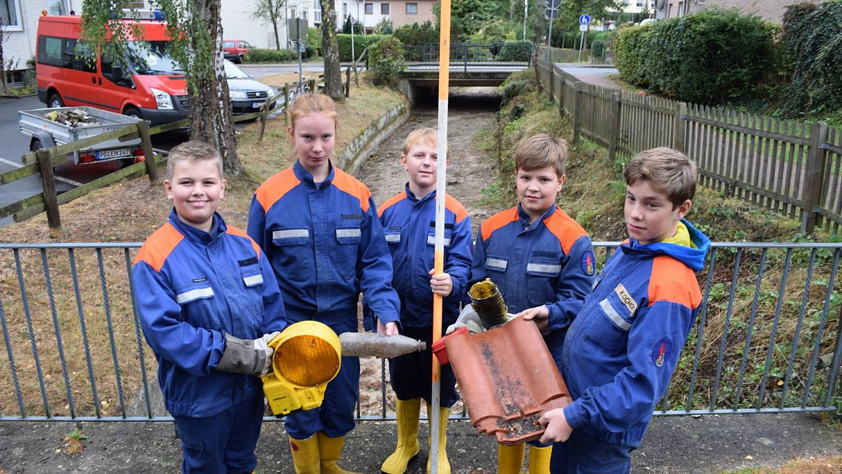 Bad Lippspringe. Ausgetrocknete Flussbetten bieten selten einen Anlass, etwas Positives darin zu sehen. Der Freiwilligen Feuerwehr Bad Lippspringe ist das trotzdem gelungen. Da der Jordan unlängst völlig trocken war, konnte die Jugendfeuerwehr ausrücken, um das Bett zu reinigen. "Wir waren von der Quelle bis zur Mündung unterwegs", erklärt Philipp Wittbecker, der sich der Aufgabe mit acht Mitgliedern der Jugendfeuerwehr angenommen hatte. Für alle war es "ziemlich irritierend, was wir dort an Müll gefunden haben", führt Wittbecker weiter aus.