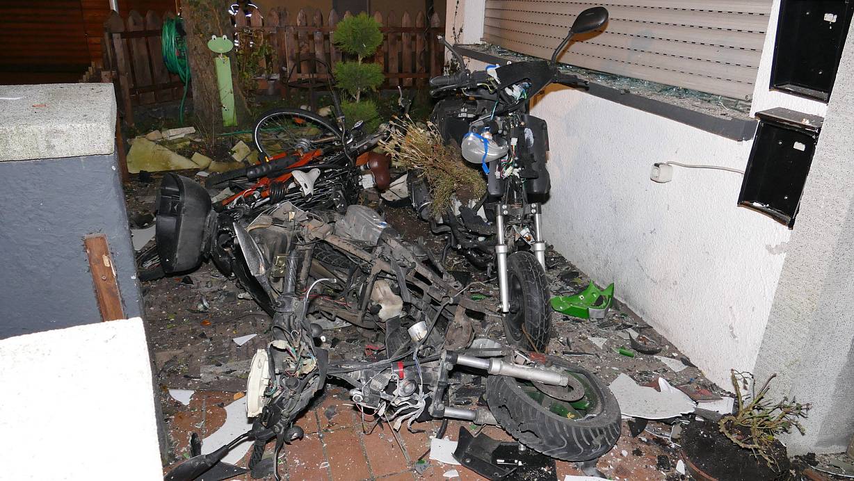 Vollkommen zerstört: Ein Roller wurde durch die Explosion vor dem Haus vollständig zerstört. | © Ralph Meyer