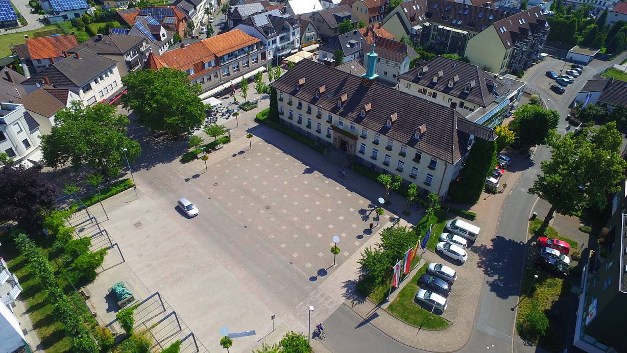 Stadtkern: Wo sich jetzt noch Rathaus und Rathausplatz befinden, soll der Supermarkt mit bis zu 120 Parkplätzen entstehen. | © Jens Reddeker