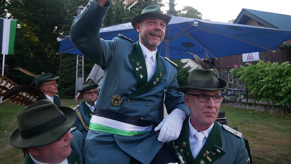 Bad Lippspringe. Frank Täubert ist neuer Bad Lippspringer Schützenkönig. Beim Vogelschießen am Samstagabend setzte der Hauptmann der Klumpsack-Kompanie den entscheidenden Treffer und wählte Ehefrau Nadine zur Königin. Der Wettkampf um die Königswürde gestaltete sich in diesem Jahr besonders spannend. Täuberts hartnäckigste Mitkonkurrenten um die Königswürde waren bis zuletzt Karsten Baumhör (West-Kompanie), Heiner Thöne (Arminius-Kompanie), Maik Güsen (Arminius-Kompanie) und Matthias Wiemann (West-Kompanie).