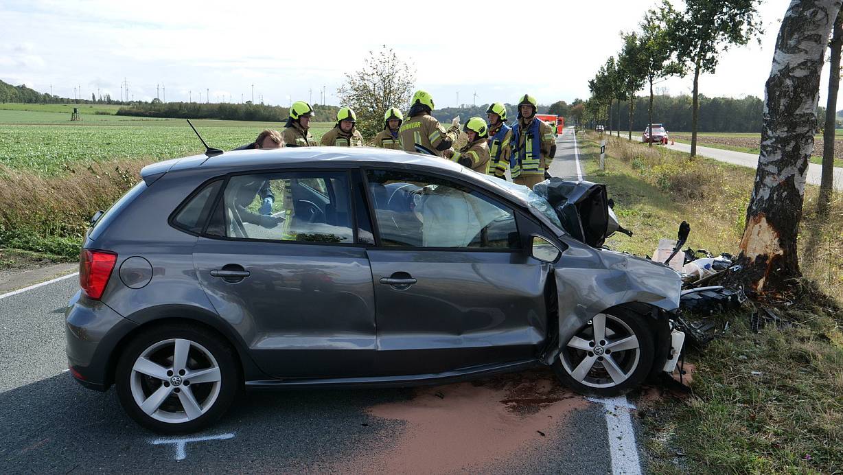 Durch die Wucht des Aufpralls wurden die Fahrzeugbatterie und Motorteile rund 30 Meter weit in den Straßengraben geschleudert