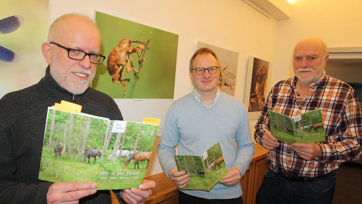 Der Nabu-Kreisvorsitzende Otmar Lüke (v. l.), Dirk Tornede (Leiter Nabu-Informationszentrum) und Hans Günter Festl von der Ortsgruppe Bad Lippspringe präsentieren das Jahresheft des Nabu. | © Uwe Müller