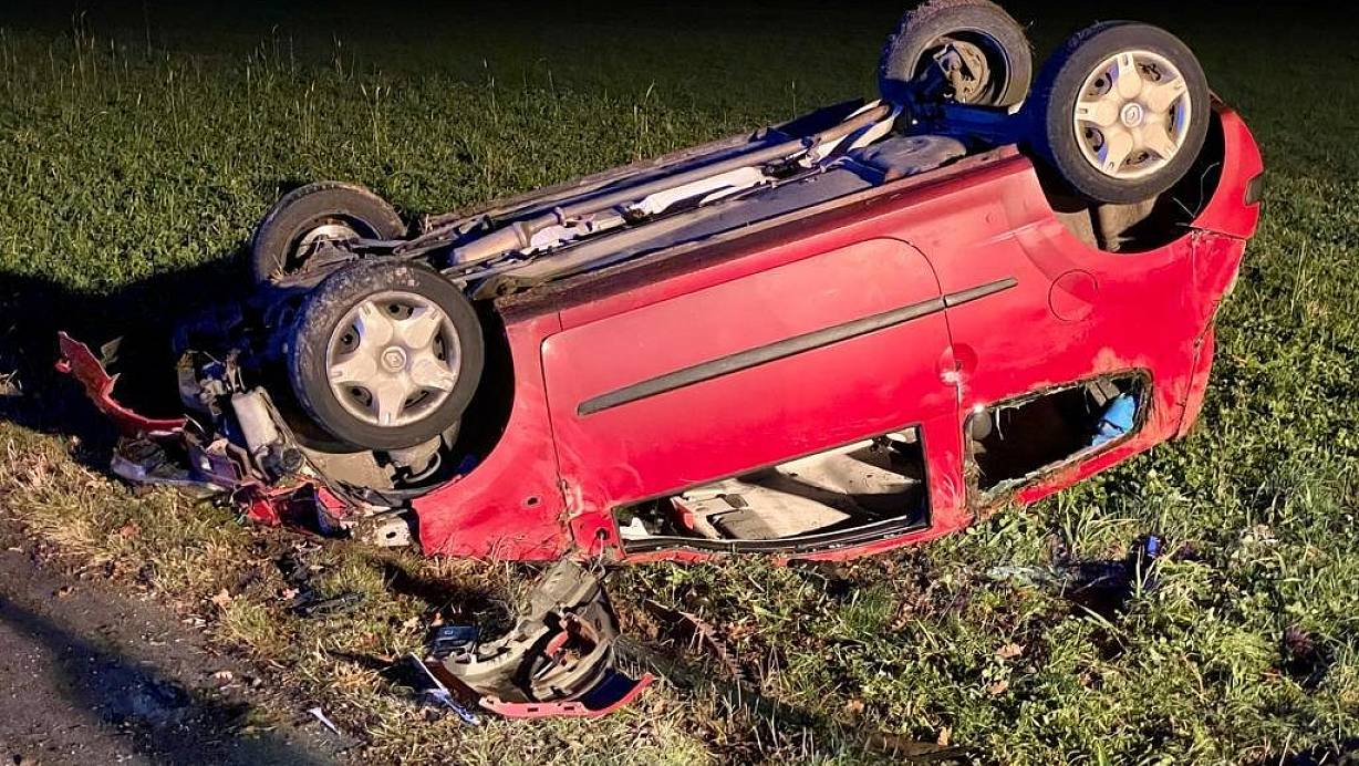 Ein Mann kommt mit seinem Kleinwagen der Marke Renault in Richtung Detmolder Straße von der Fahrbahn ab.