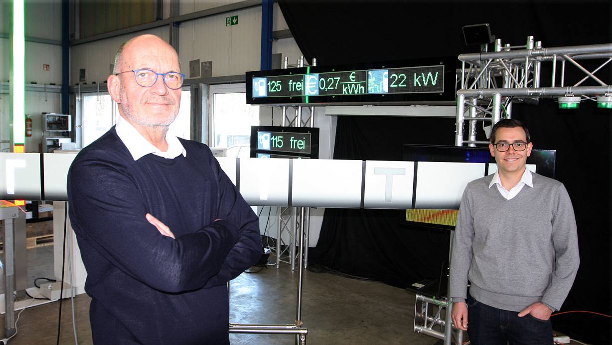 Rudolf Broer (l.) und Geschäftsführer Matthias Rieger in der Halle, wo viele innovative Lösungen rund um Verkehr und Parken erprobt und vorgestellt werden. | © Uwe Müller