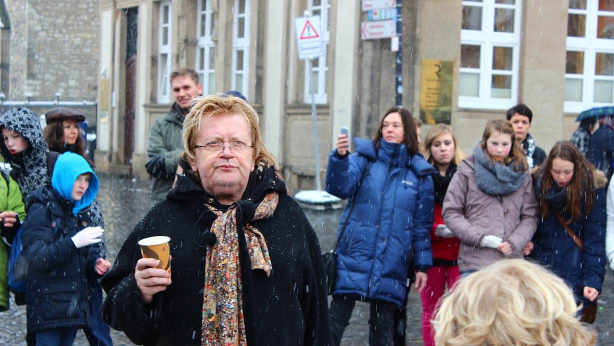 HA Schult war 2013 schon in Paderborn, das Foto zeigt ihn auf dem Marktplatz. | © Frederik Grabbe