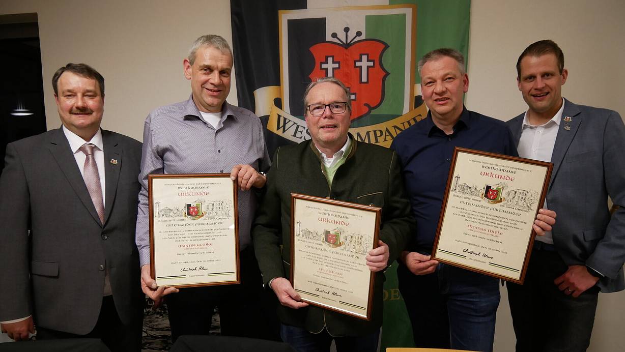 Für besondere Leistungen und Verdienste wurden Uwe Kilian und Thomas Thiele jeweils zum Ehrenoberleutnant und Martin Gemke zum Ehrenleutnant ernannt.