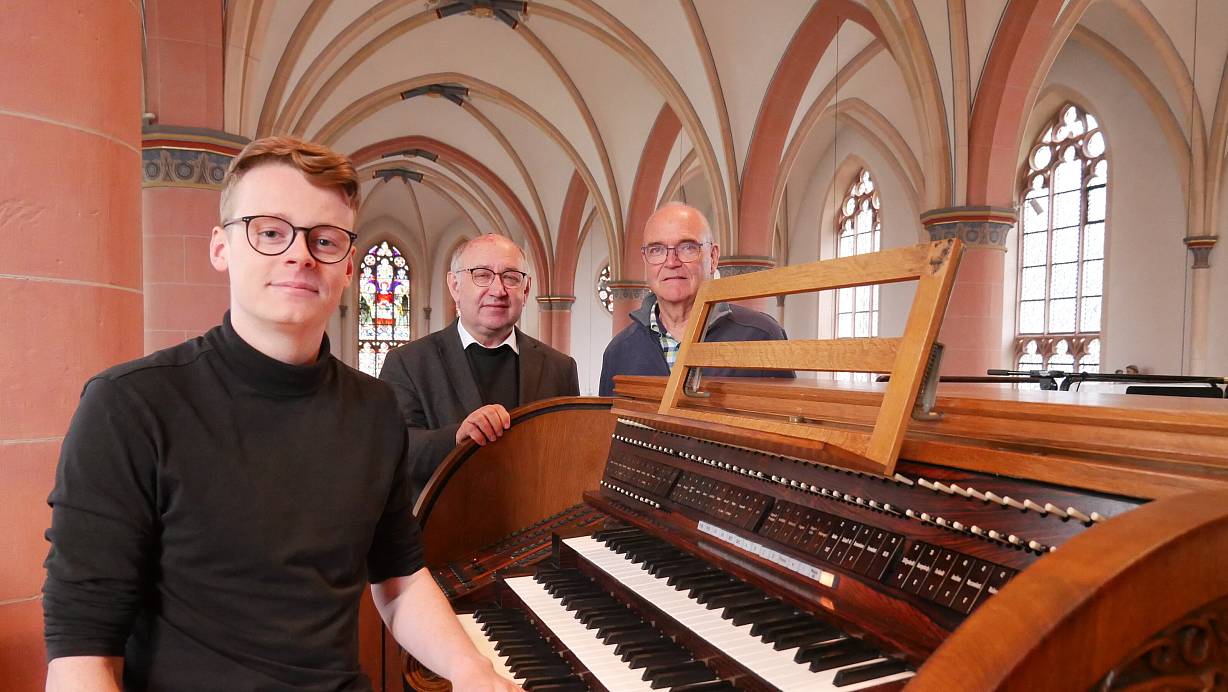 Freuen sich über die Zusammenarbeit (v. l.): Der neue Kirchenmusiker Erik Strohmeier, Pfarrer Georg Kersting und Georg Heukamp, Geschäftsführer des Kirchenvorstandes von St. Martin. | © Klaus Karenfeld
