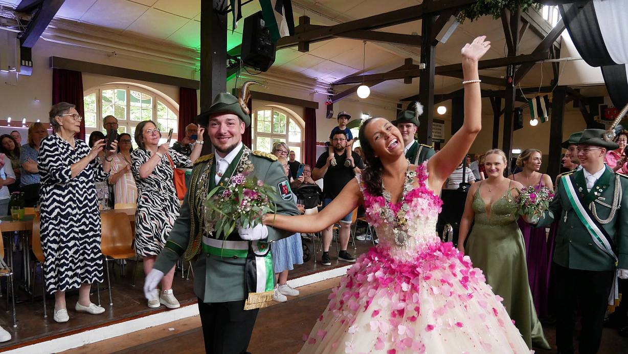 Die große Parade und der Festumzug fallen ins Wasser. Das Königspaar Philipp Kilian und Anne Plonka überstrahlt trotzdem das Schützenfest in der Kurstadt.