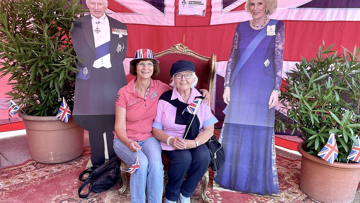 Bärbel Williams und Margret Stracke sind extra aus Gütersloh und Harsewinkel angereist und fühlen sich wohl zwischen dem königlichen Paar Charles und Camilla. | © Carola Drabon