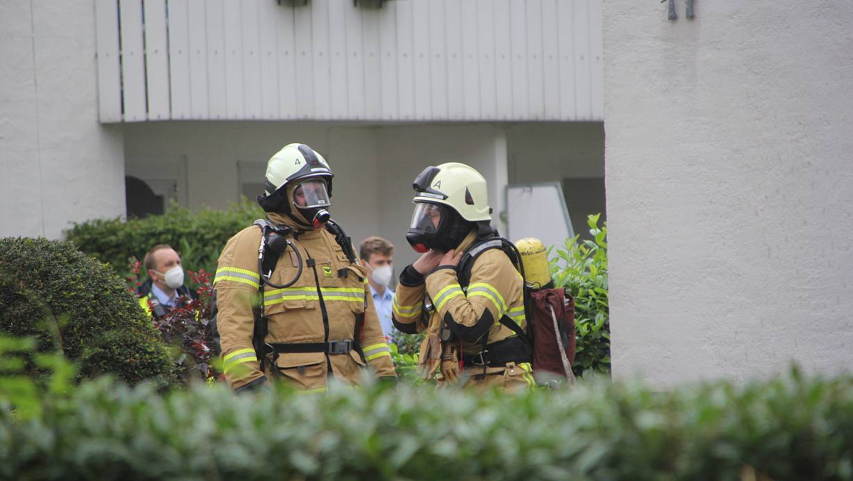 Feuerwehrleute stehen ausgerüstet mit Atemschutzgerät bereit für den Einsatz. | © Florian Weyand