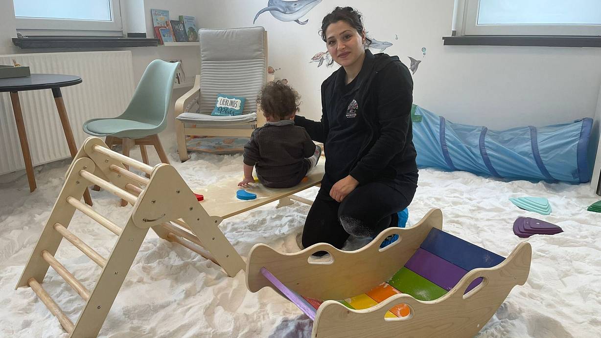 Jasmina Chahrour und ihr Sohn Jibrail auf dem Salzspielplatz in der Bad Lippspringer Bambini-Welt. | © Jule Prietzel