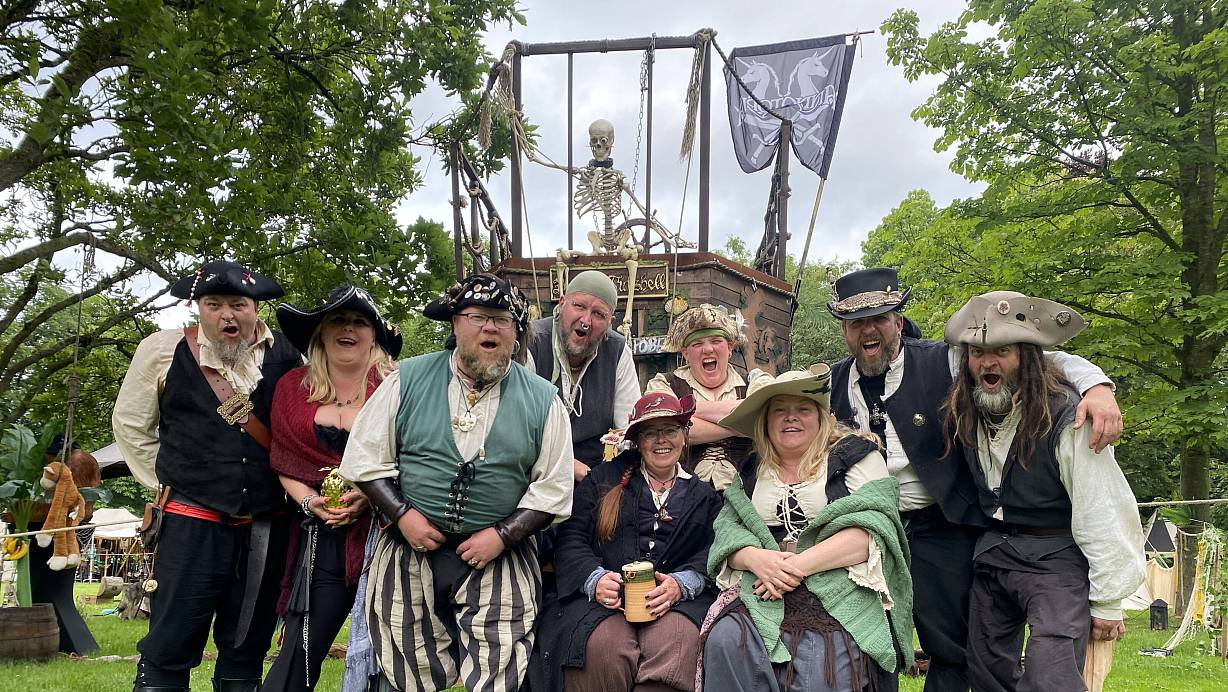 Als Piraten machen (v. l.) Dennis Esser, Mareike Hermann, Lars Schütze, Wolfgang Schwarzschultz, Miriam Mandel, Johanna Köster, Stefanie Neumann, Sasha Neumann und Sven Koberstein das Parkfestival unsicher. | © Julia Spiekerkötter